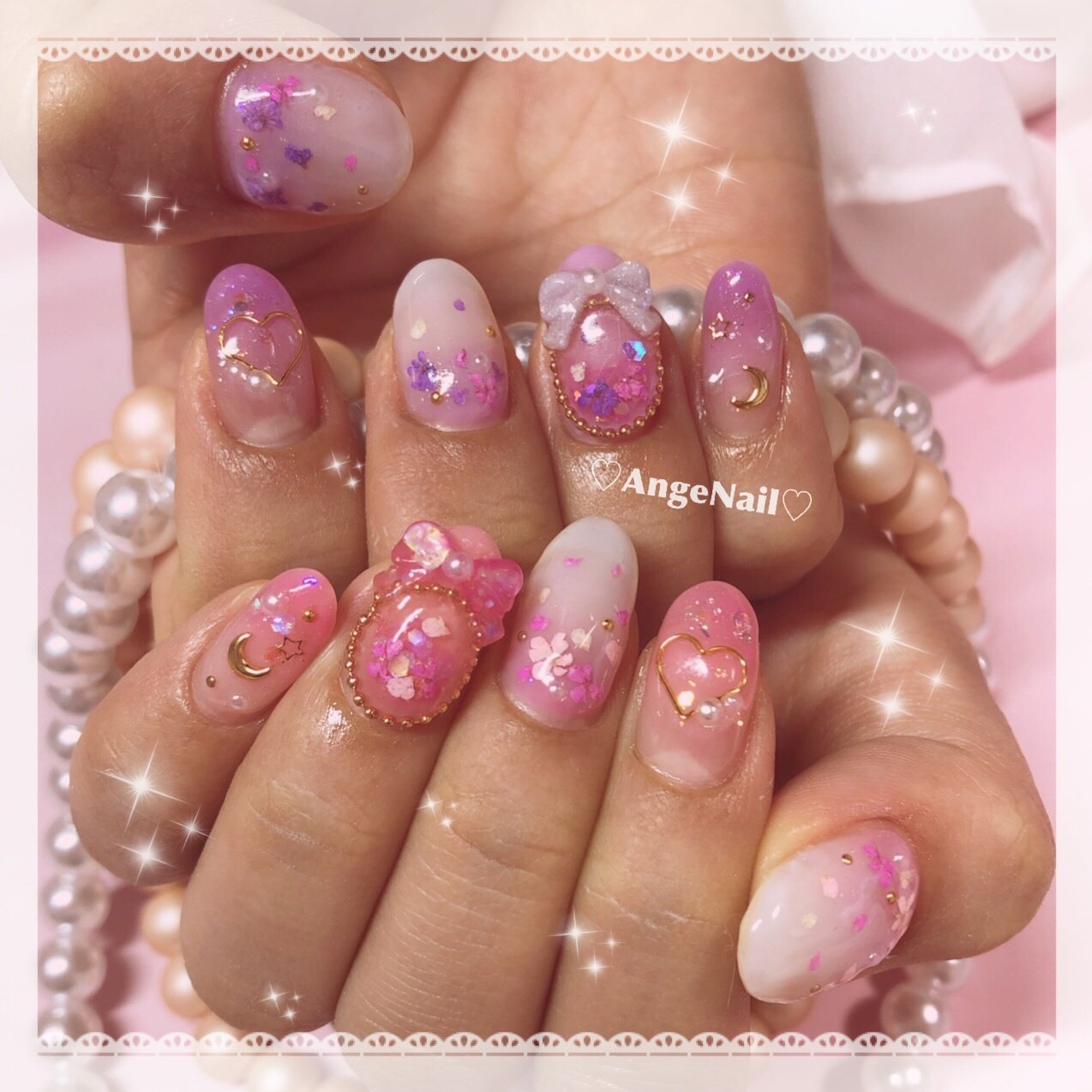 ネイルチップ ピンク ゆめかわ ネイル ゆめかわいい ハート オーダーメイド アニメのフリマ オタマート